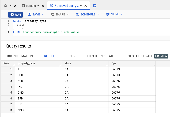 아래 예시에서 fips column이 '06013'과 '06075'을 둘다 출력하고 싶다면, IN을 사용할 수 있습니다.
