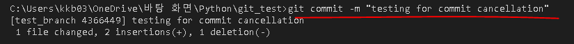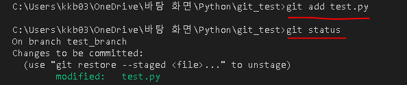 설명 : git add test.py로 파일을 staging area로 추가시키고, git reset HEAD test.py로 파일을 working directory에 다시 되돌린다.