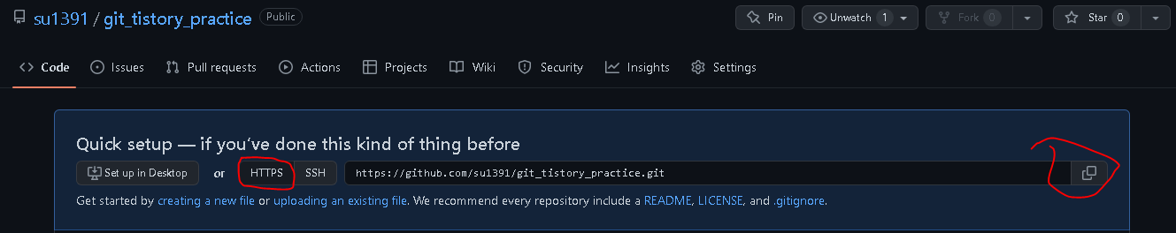 2.Github에서 만든 repository에 들어가서 HTTPS를 다운로드합니다.